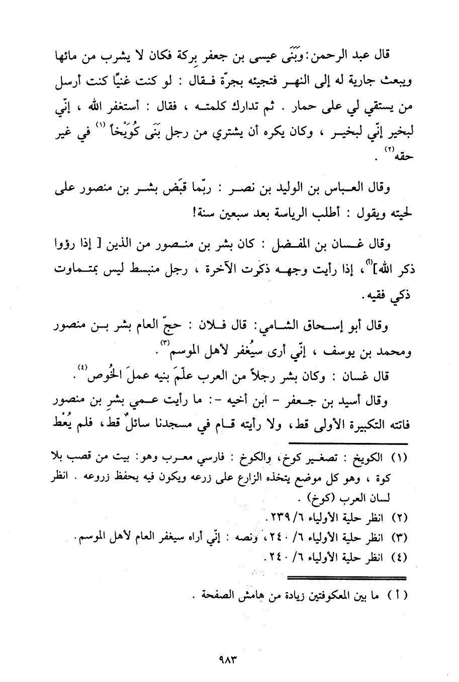 وَقَالَ الْعَبَّاسُ بْنُ الْوَلِيدِ بْنِ نَصْرٍ: رُبَّمَا قَبَضَ بِشْرُ بْنُ مَنْصُورٍ عَلَى لِحْيَتِهِ وَيَقُولُ: أَطْلُبُ الرِّيَاسَةَ بَعْدَ سَبْعِينَ سَنَةً.
