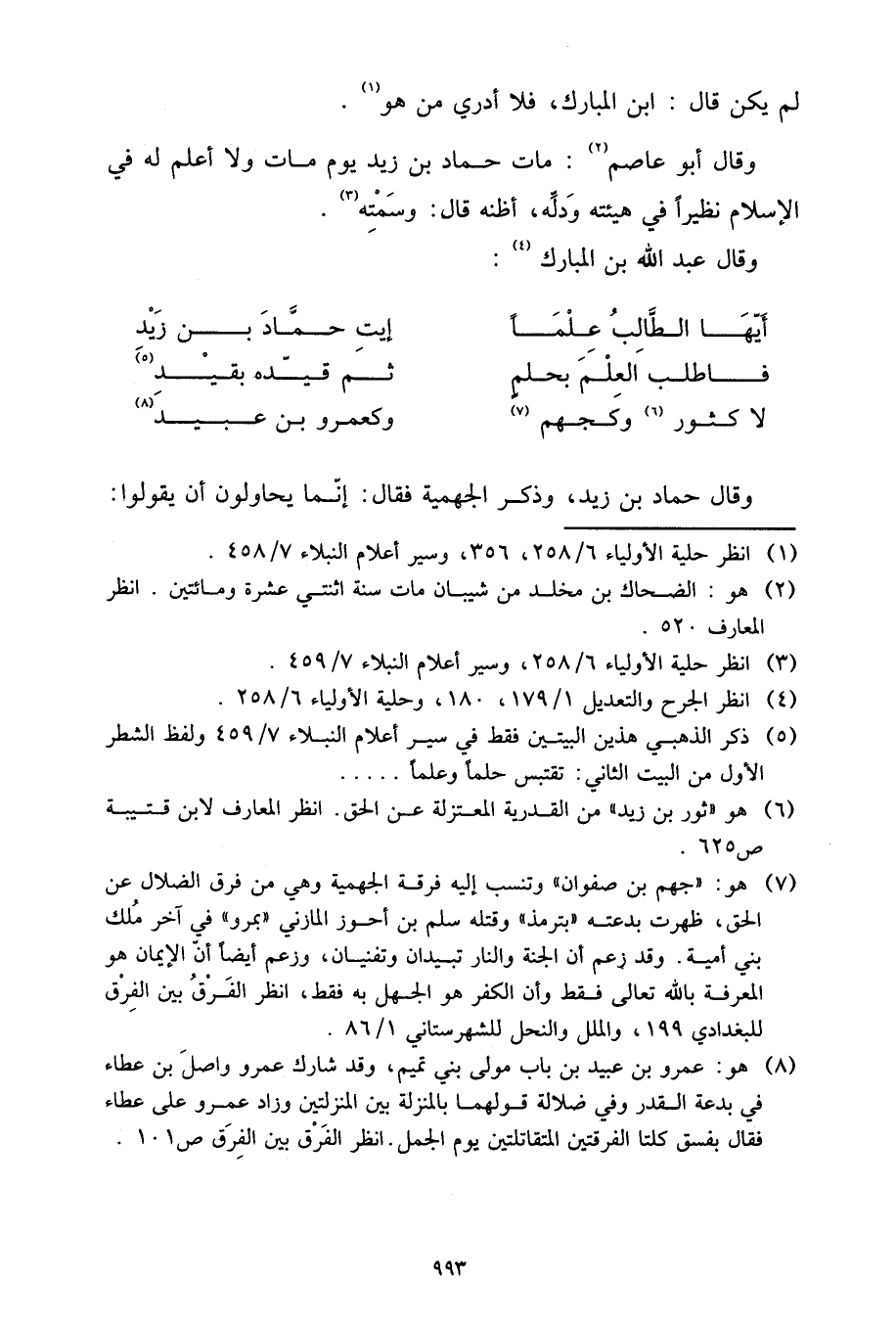 أَيُّهَا الطَّالِبُ عِلْمًا ... إِيتِ حَمَّادَ بْنَ زَيْدِ