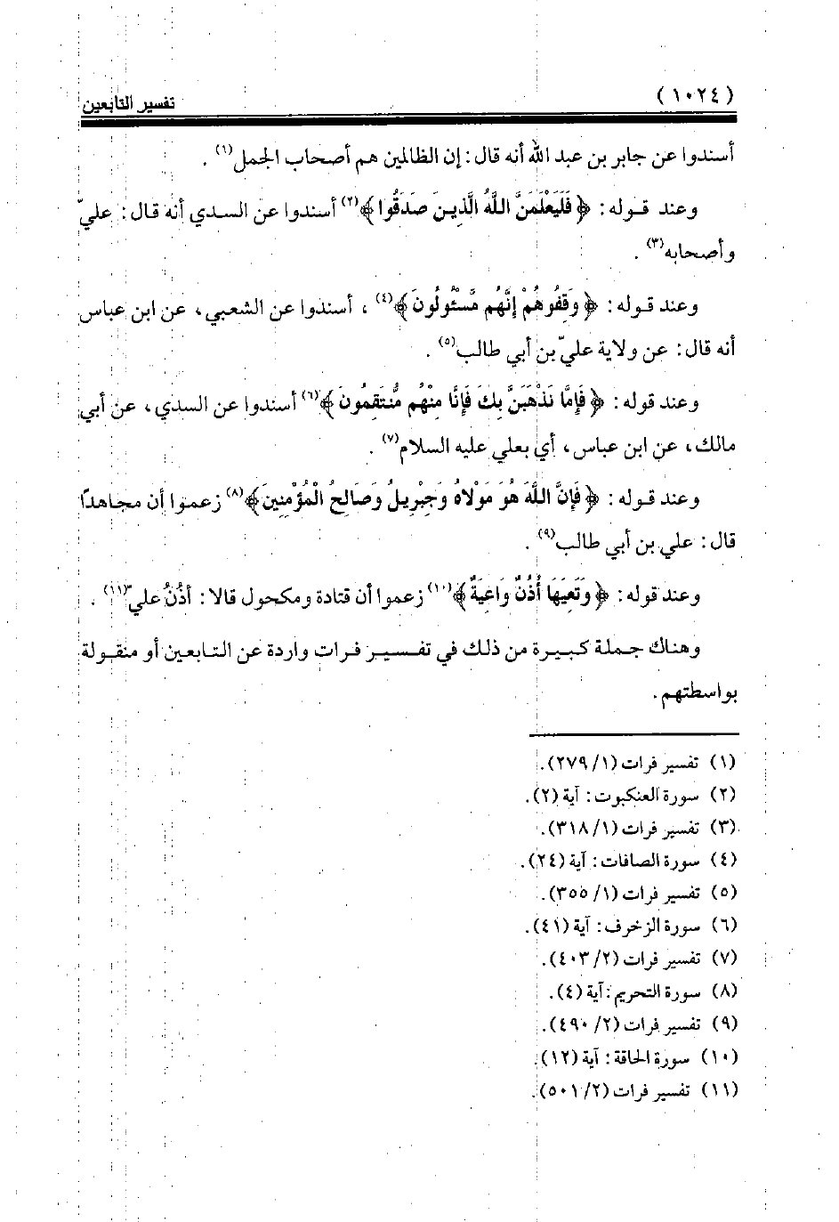 وهناك جملة كبيرة من ذلك في تفسير فرات واردة عن التابعين أو منقولة بواسطتهم.