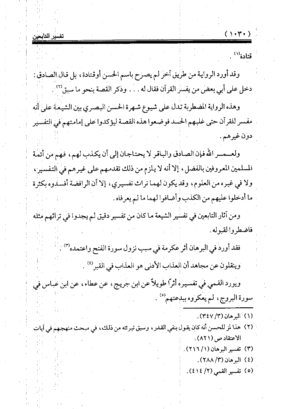 ويورد القمي في تفسيره أثرا طويلا عن ابن جريج، عن عطاء، عن ابن عباس في سورة البروج، لم يعكروه ببدعتهم (¬5).