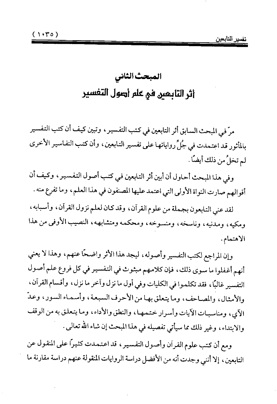 وفي هذا المبحث أحاول أن أبين أثر التابعين في كتب أصول التفسير، وكيف أن أقوالهم صارت النواة الأولى التي اعتمد عليها المصنفون في هذا العلم، وما تفرع منه.