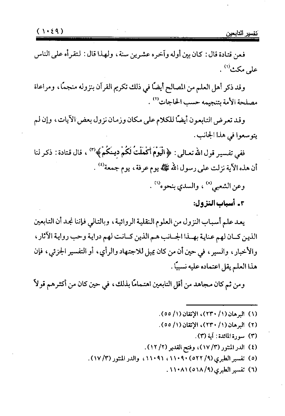 وقد تعرض التابعون أيضا للكلام على مكان وزمان نزول بعض الآيات، وإن لم يتوسعوا في هذا الجانب.