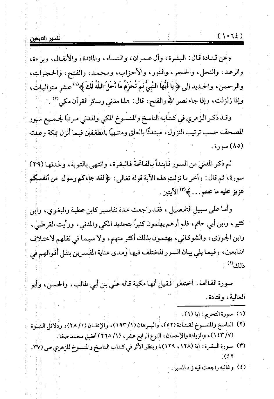 (¬2) الناسخ والمنسوخ لقتادة (52)، والبرهان (1/ 193)، والإتقان (1/ 28)، ودلائل النبوة (7/ 143)، والزيادة والإحسان، النوع الرابع عشر، (1/ 265) تحقيق محمد صفا.