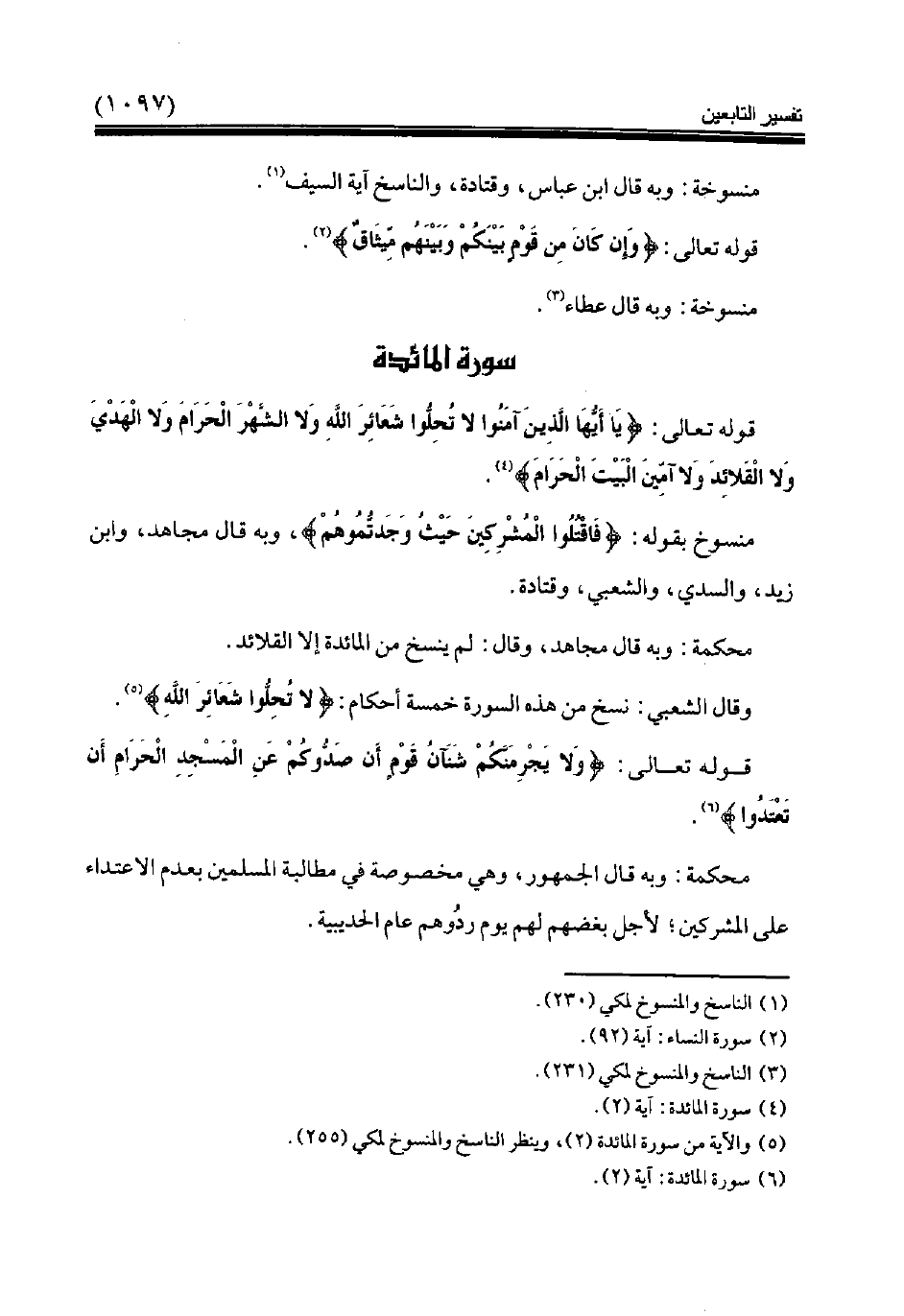 (¬5) والآية من سورة المائدة (2)، وينظر الناسخ والمنسوخ لمكي (255).