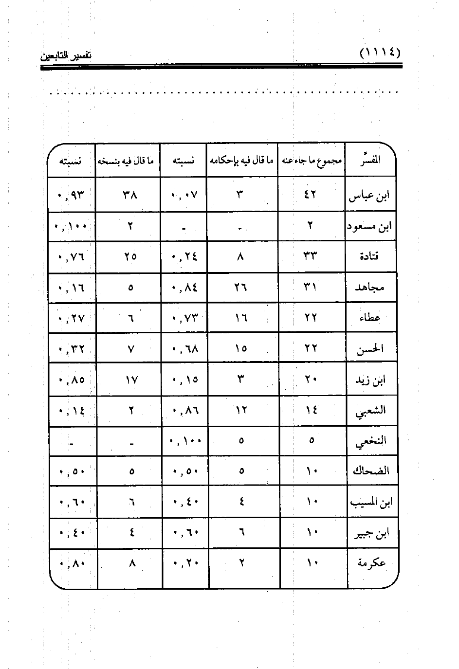 المفسّر: مجموع ما جاء عنه: ما قال فيه بإحكامه: نسبته: ما قال فيه بنسخه: نسبته