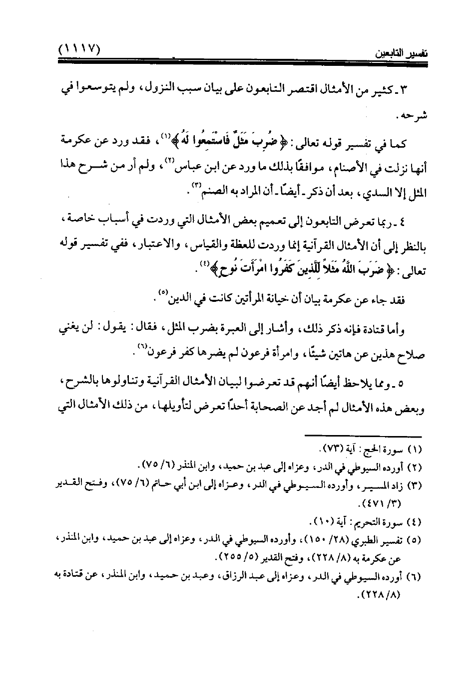 3 - كثير من الأمثال اقتصر التابعون على بيان سبب النزول، ولم يتوسعوا في شرحه.