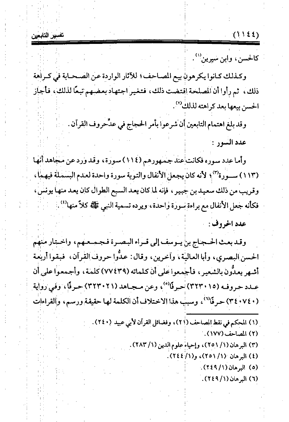 وقد بلغ اهتمام التابعين أن شرعوا بأمر الحجاج في عدّ حروف القرآن.