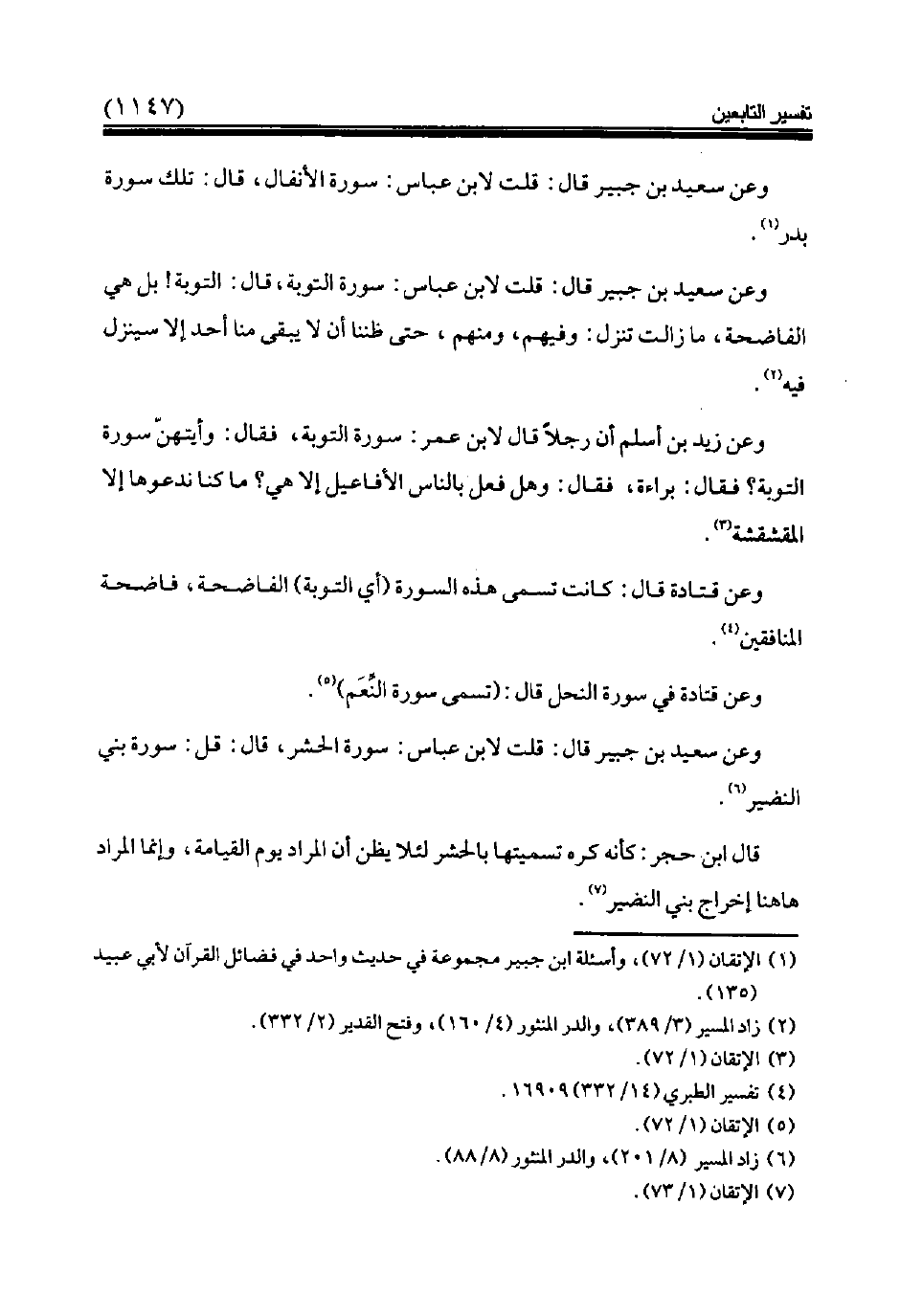 (¬1) الإتقان (1/ 72)، وأسئلة ابن جبير مجموعة في حديث واحد في فضائل القرآن لأبي عبيد (135).