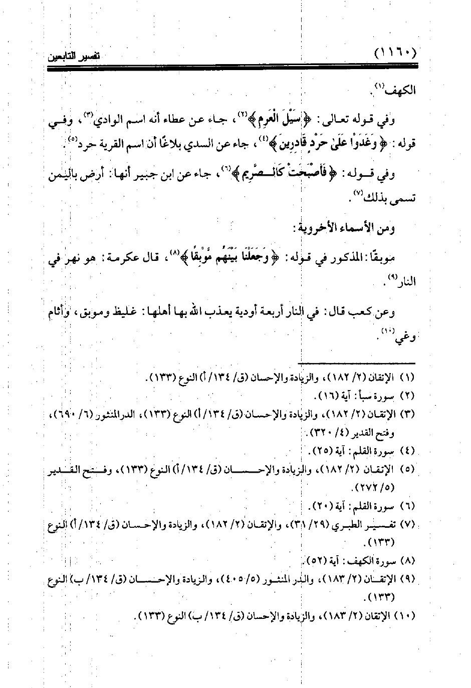 وفي قوله تعالى: {سَيْلَ الْعَرِمِ} (¬2)، جاء عن عطاء أنه اسم الوادي (¬3)، وفي قوله: {وَغَدَوْا عَلى َ حَرْدٍ قَادِرِينَ} (¬4)، جاء عن السدي بلاغا أن اسم القرية حرد (¬5).