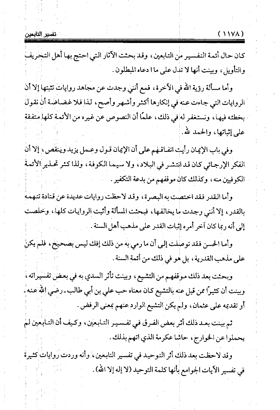 وقد لاحظت بعد ذلك أثر التوحيد في تفسير التابعين، وأنه وردت روايات كثيرة في تفسير الآيات الجوامع بأنها كلمة التوحيد (لا إله إلا الله).