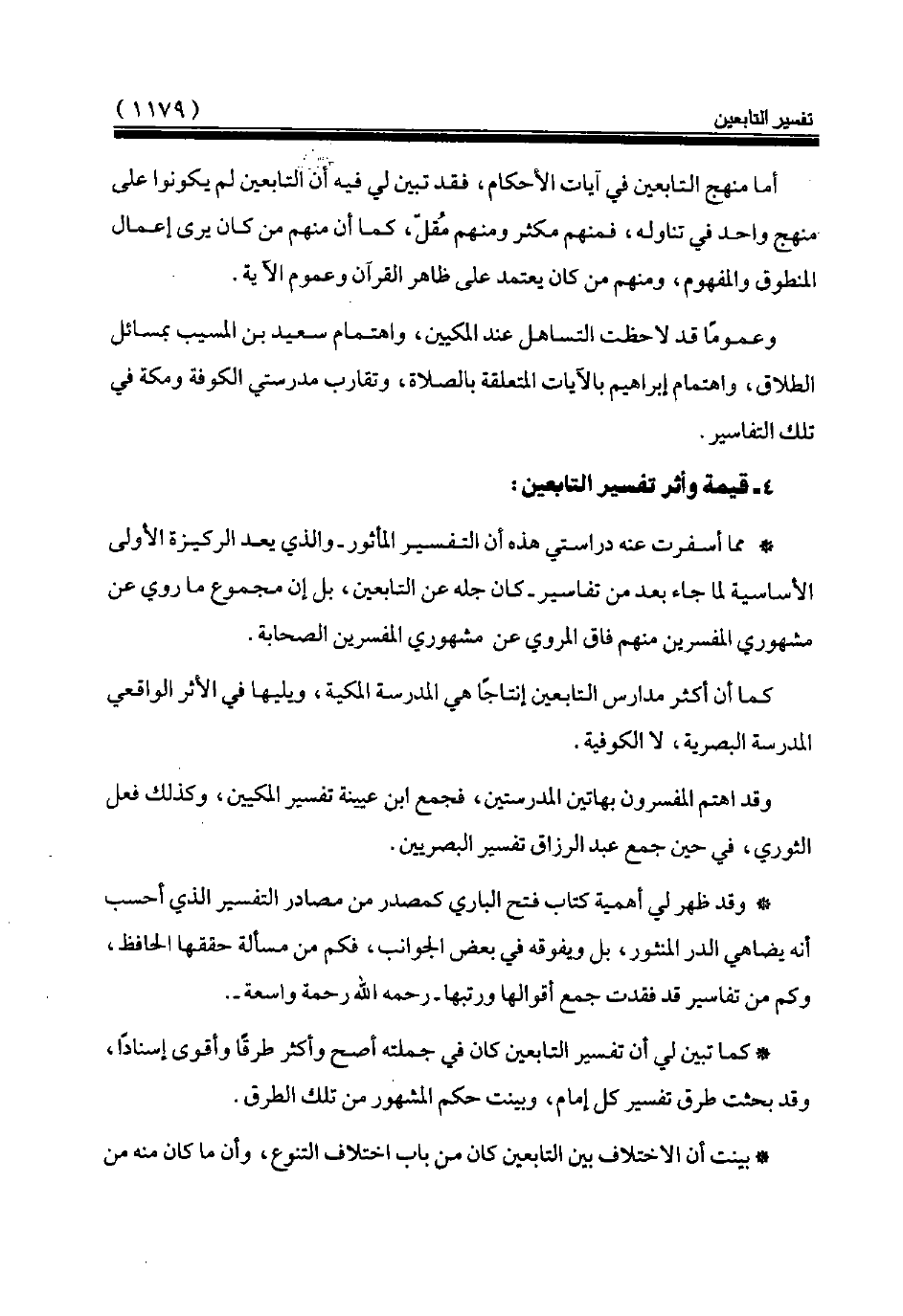 وعموما قد لاحظت التساهل عند المكيين، واهتمام سعيد بن المسيب بمسائل الطلاق، واهتمام إبراهيم بالآيات المتعلقة بالصلاة، وتقارب مدرستي الكوفة ومكة في تلك التفاسير.