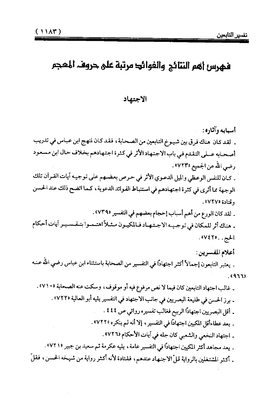 يعتبر التابعون إجمالا أكثر اجتهادا في التفسير من الصحابة باستثناء ابن عباس رضي الله عنه «966».