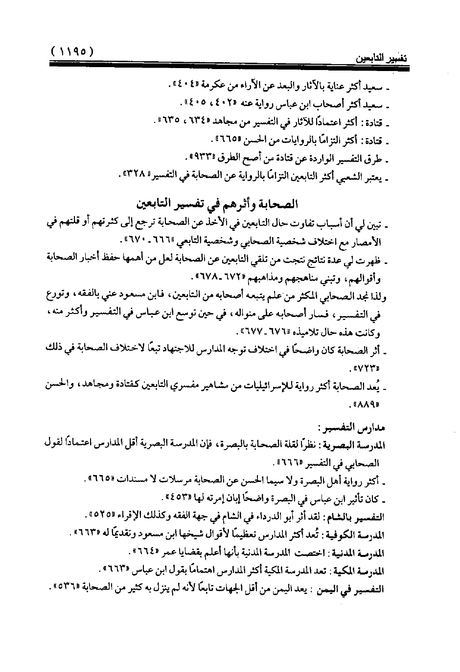 تبين لي أن أسباب تفاوت حال التابعين في الأخذ عن الصحابة ترجع إلى كثرتهم أو قلتهم في الأمصار مع اختلاف شخصية الصحابي وشخصية التابعي «670666».