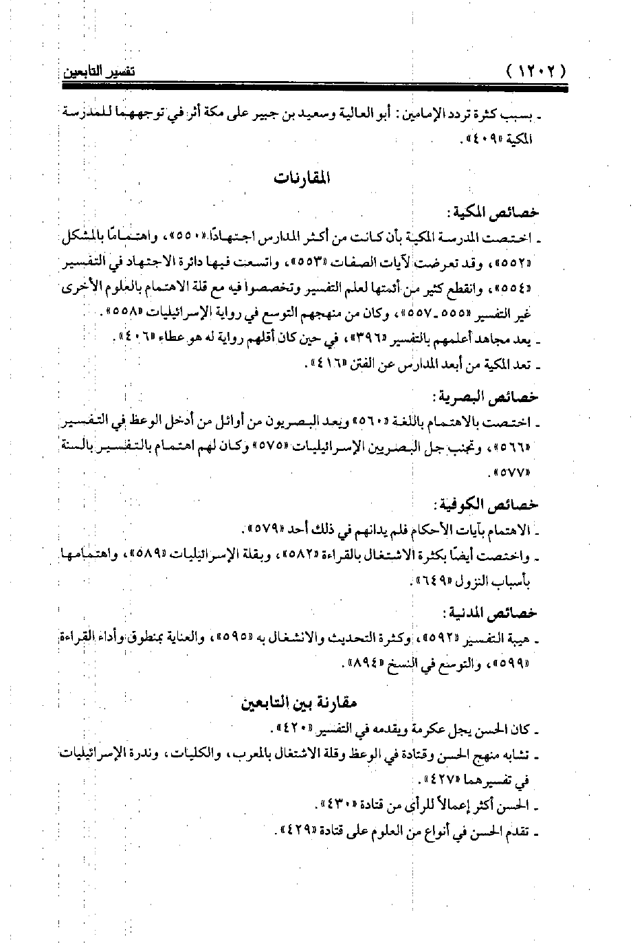 هيبة التفسير «592»، وكثرة التحديث والانشغال به «595»، والعناية بمنطوق وأداء القراءة «599»، والتوسع في النسخ «894».
