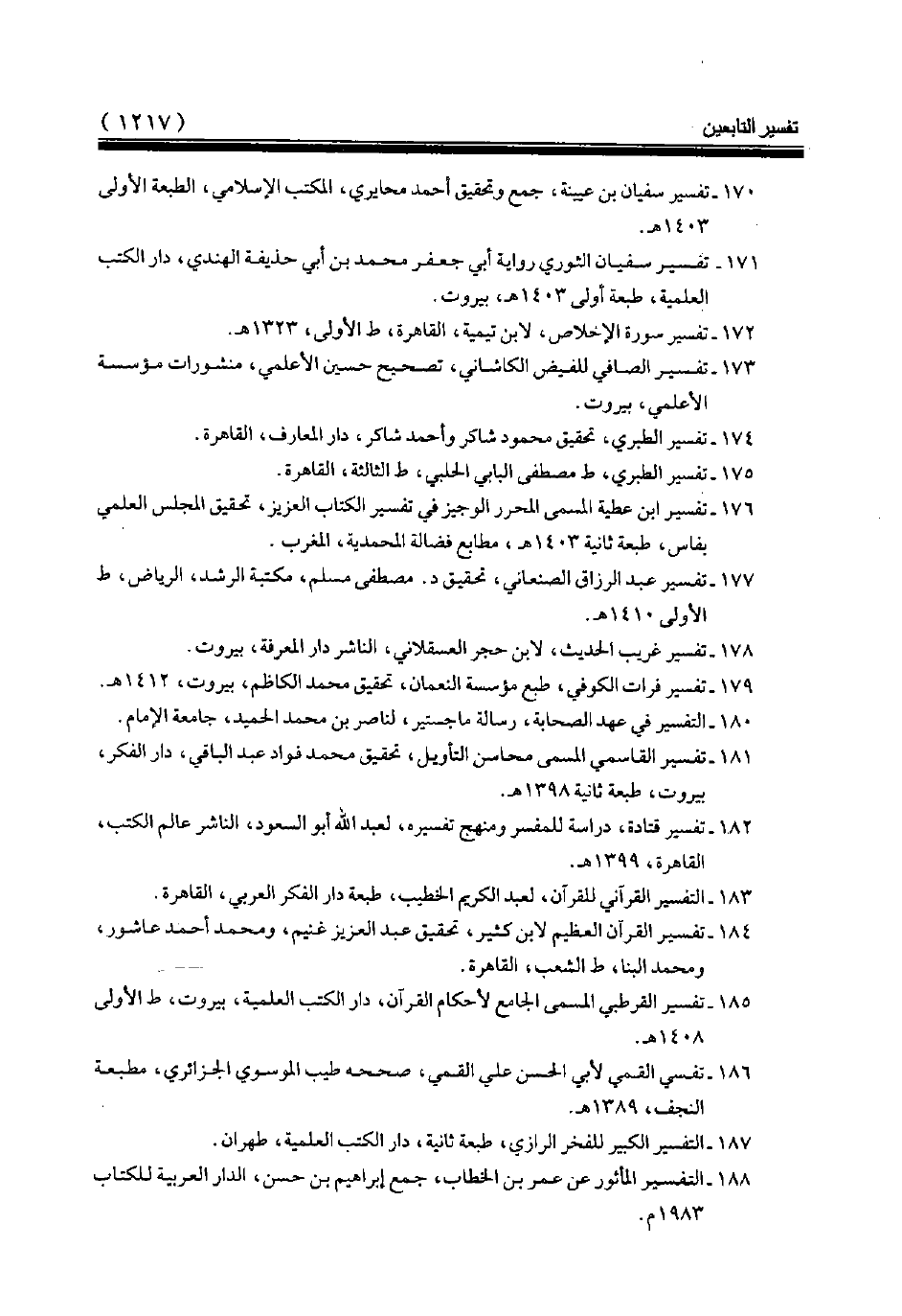 170 - تفسير سفيان بن عيينة، جمع وتحقيق أحمد محايري، المكتب الإسلامي، الطبعة الأولى 1403هـ.