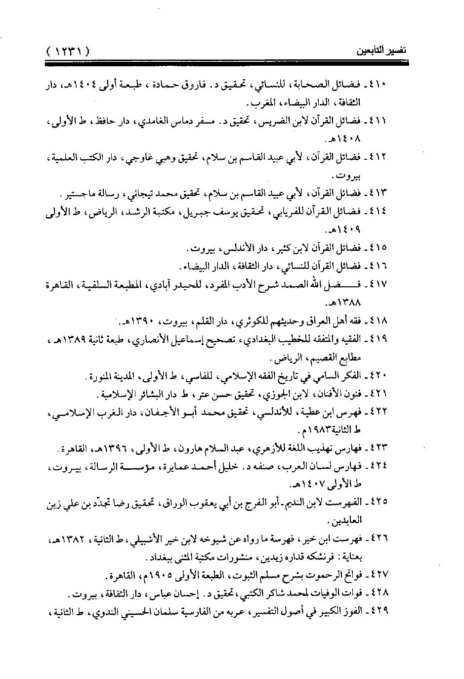415 - فضائل القرآن لابن كثير، دار الأندلس، بيروت.