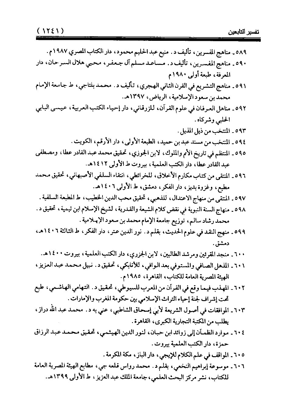 589 - مناهج المفسرين، تأليف د. منيع عبد الحليم محمود، دار الكتاب المصري 1987م.