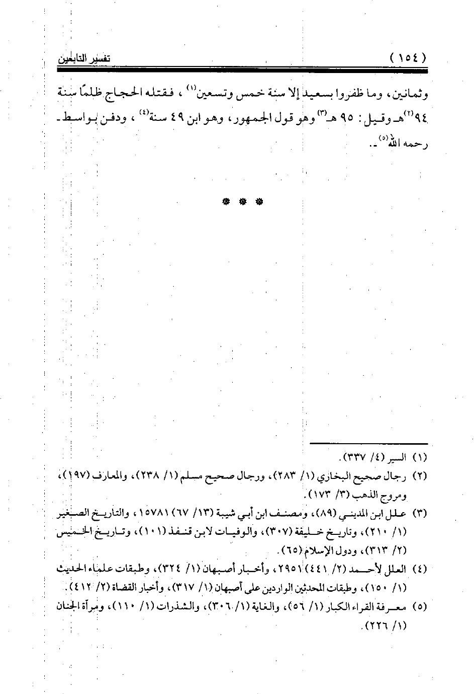 وثمانين، وما ظفروا بسعيد إلا سنة خمس وتسعين (¬1)، فقتله الحجاج ظلما سنة 94 (¬2) هـ وقيل: 95هـ (¬3) وهو قول الجمهور، وهو ابن 49سنة (¬4)، ودفن بواسط رحمه الله (¬5).