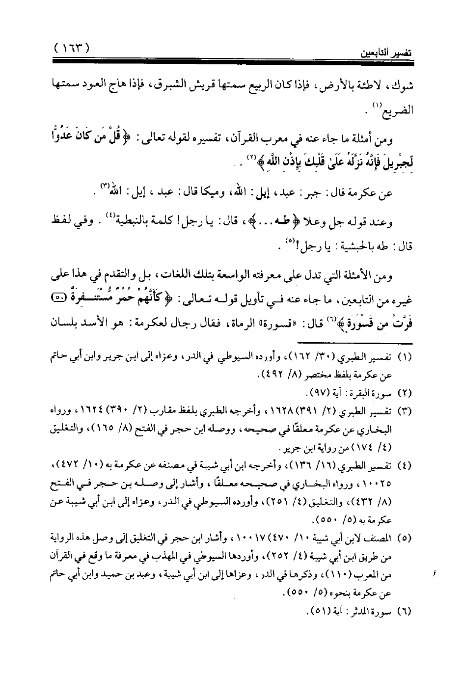 (¬5) المصنف لابن أبي شيبة 10/ 470) 10017، وأشار ابن حجر في التغليق إلى وصل هذه الرواية من طريق ابن أبي شيبة (4/ 252)، وأوردها السيوطي في المهذب في معرفة ما وقع في القرآن من المعرب (110)، وذكرها في الدر، وعزاها إلى ابن أبي شيبة، وعبد بن حميد وابن أبي حاتم عن عكرمة بنحوه (5/ 550).