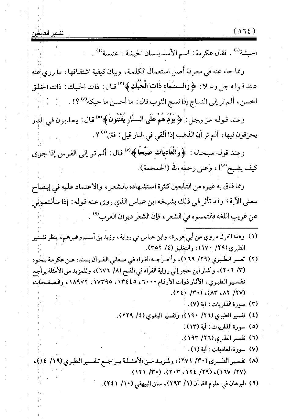 (¬8) تفسير الطبري (30/ 271)، ولمزيد من الأمثلة يراجع تفسير الطبري (19/ 14)، (27/ 167)، (29/ 124، 203)، (30/ 121).