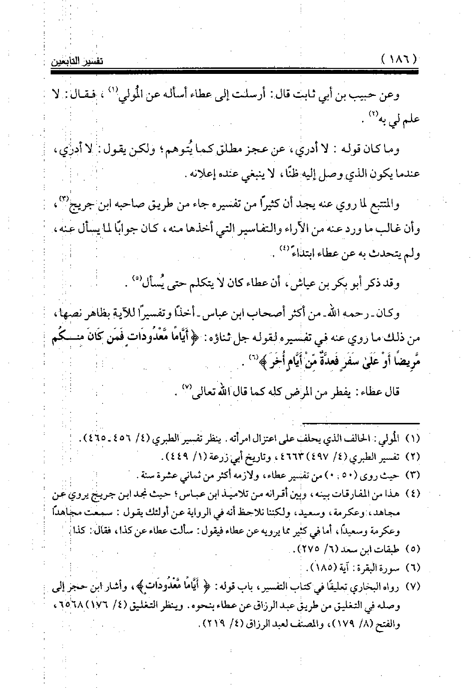 (¬7) رواه البخاري تعليقا في كتاب التفسير، باب قوله: {أَيَّاماً مَعْدُودَاتٍ} *، وأشار ابن حجر إلى وصله في التغليق من طريق عبد الرزاق عن عطاء بنحوه. وينظر التغليق (4/ 176) 6568، والفتح (8/ 179)، والمصنف لعبد الرزاق (4/ 219).
