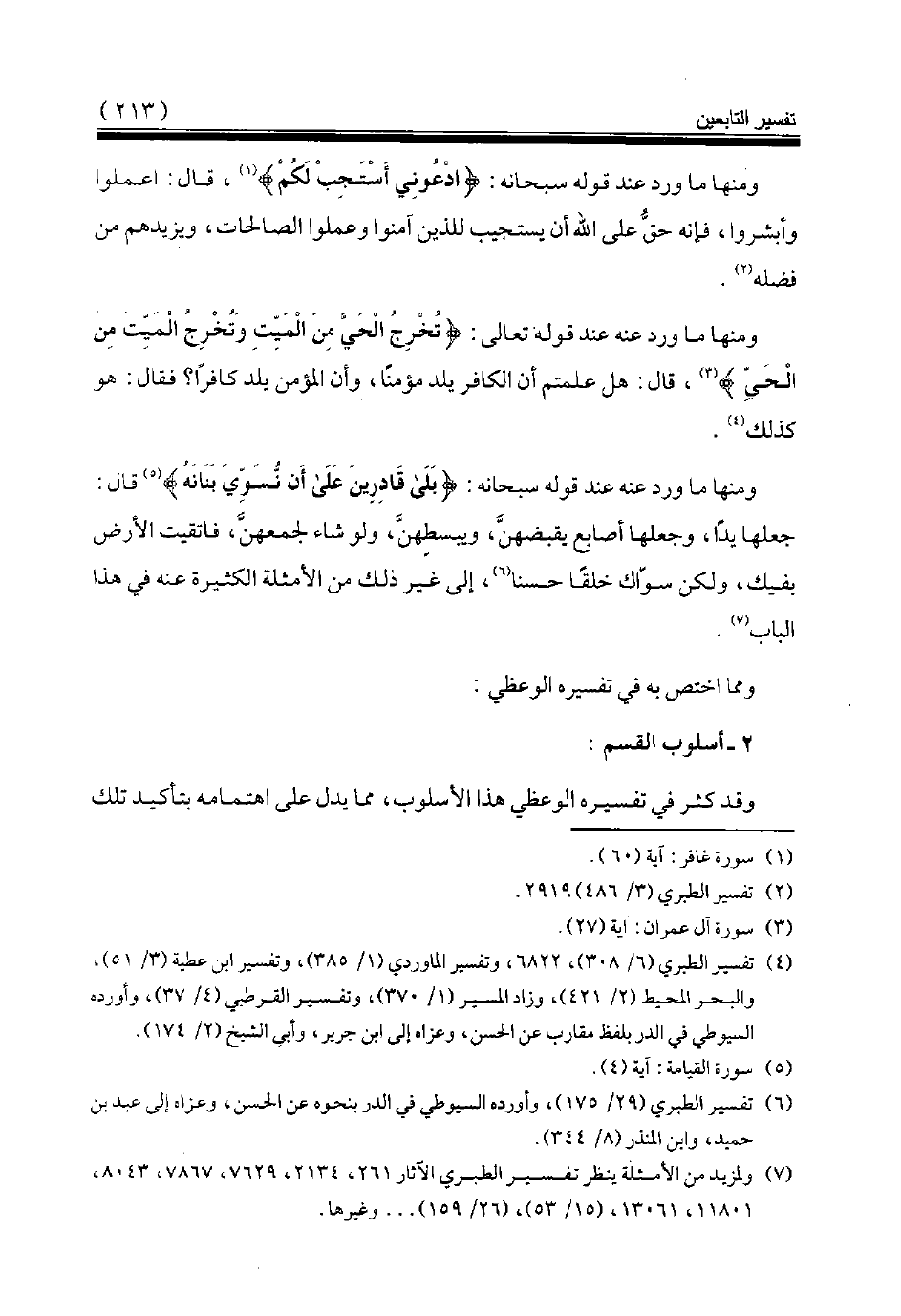 (¬7) ولمزيد من الأمثلة ينظر تفسير الطبري الآثار 261، 2134، 7629، 7867، 8043، 11801، 13061، (15/ 53)، (26/ 159) وغيرها.