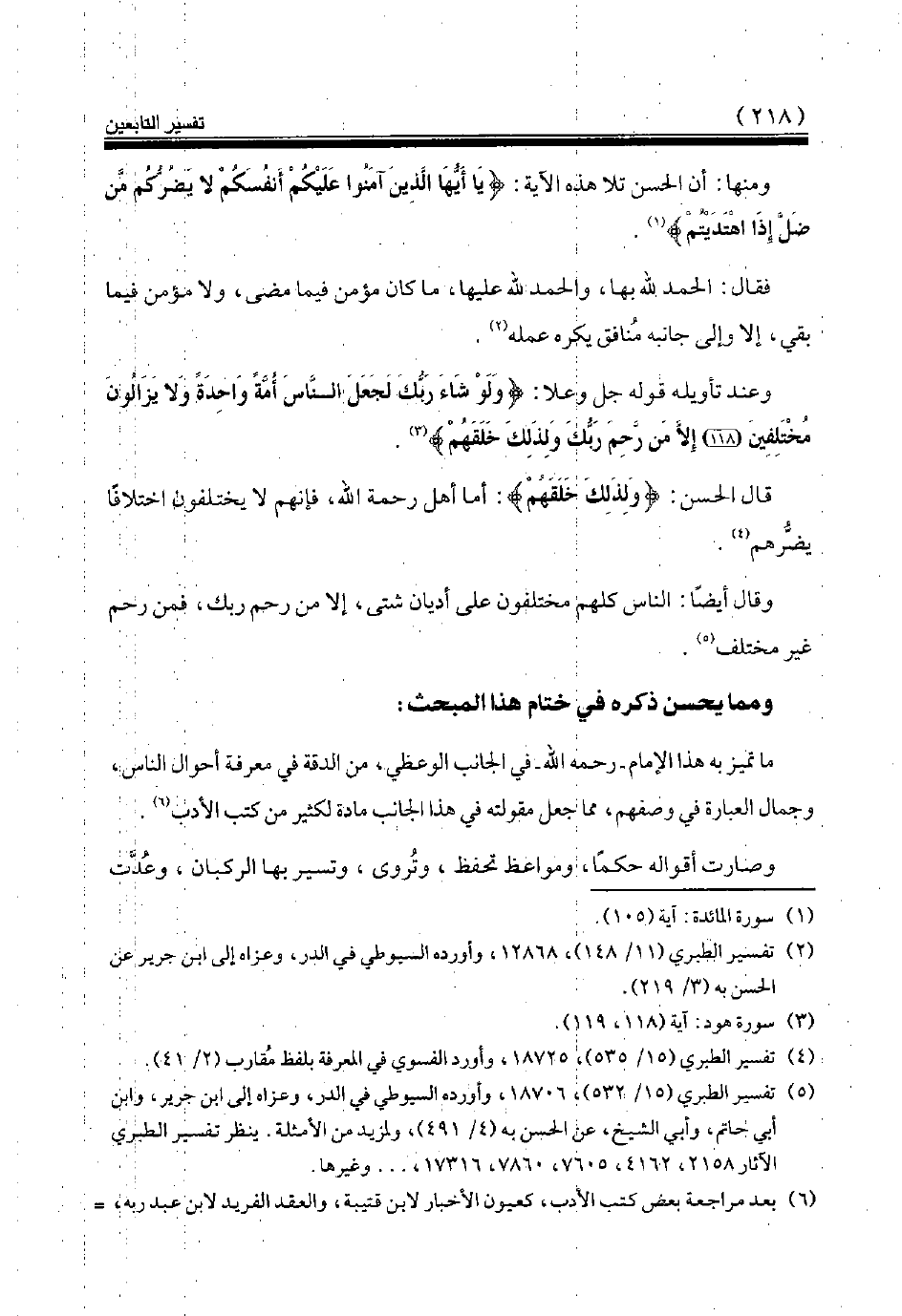 (¬5) تفسير الطبري (15/ 532)، 18706، وأورده السيوطي في الدر، وعزاه إلى ابن جرير، وابن أبي حاتم، وأبي الشيخ، عن الحسن به (4/ 491)، ولمزيد من الأمثلة. ينظر تفسير الطبري الآثار 2158، 4162، 7605، 7860، 17316، وغيرها.