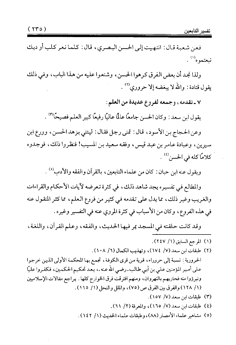 ولذا نجد أن بعض الفرق كرهوا الحسن، وشنعوا عليه من هذا الباب، وفي ذلك يقول قتادة: والله لا يبغضه إلا حروري (¬2).