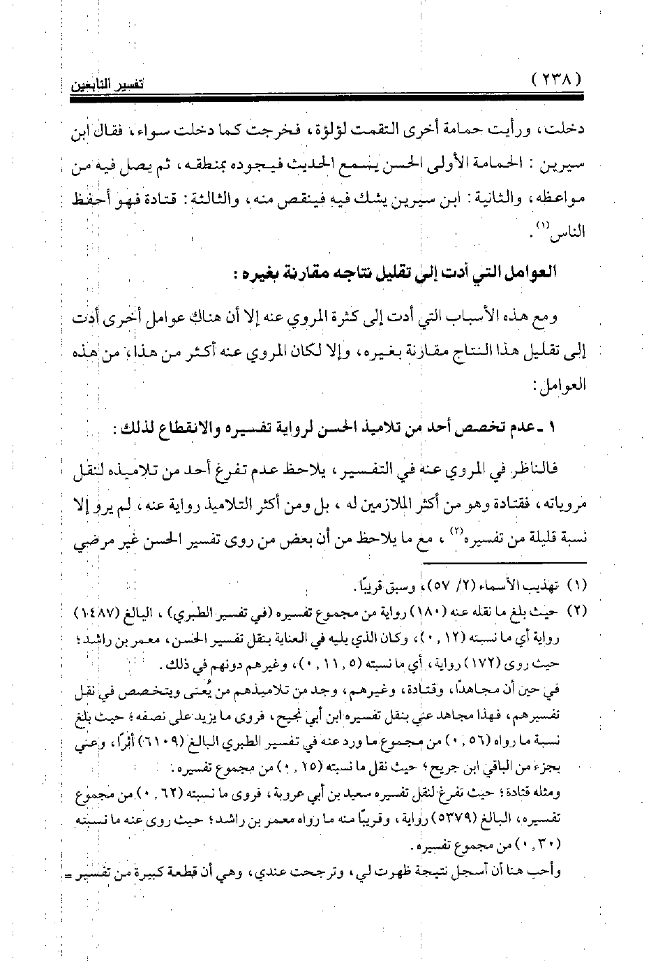 فالناظر في المروي عنه في التفسير، يلاحظ عدم تفرغ أحد من تلاميذه لنقل مروياته، فقتادة وهو من أكثر الملازمين له، بل ومن أكثر التلاميذ رواية عنه، لم يرو إلا نسبة قليلة من تفسيره (¬2)، مع ما يلاحظ من أن بعض من روى تفسير الحسن غير مرضي