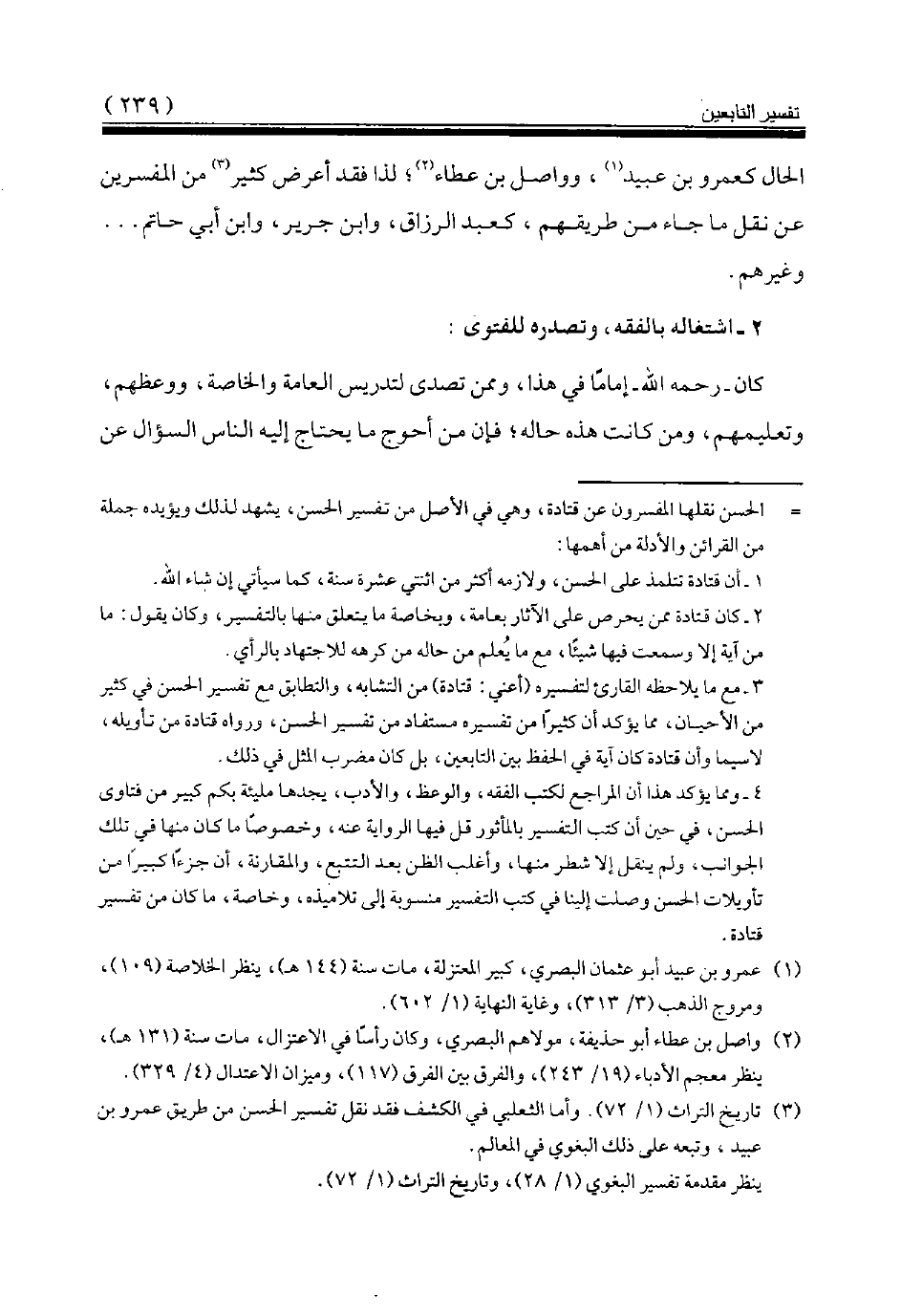 الحال كعمرو بن عبيد (¬1)، وواصل بن عطاء (¬2) لذا فقد أعرض كثير (¬3) من المفسرين عن نقل ما جاء من طريقهم، كعبد الرزاق، وابن جرير، وابن أبي حاتم