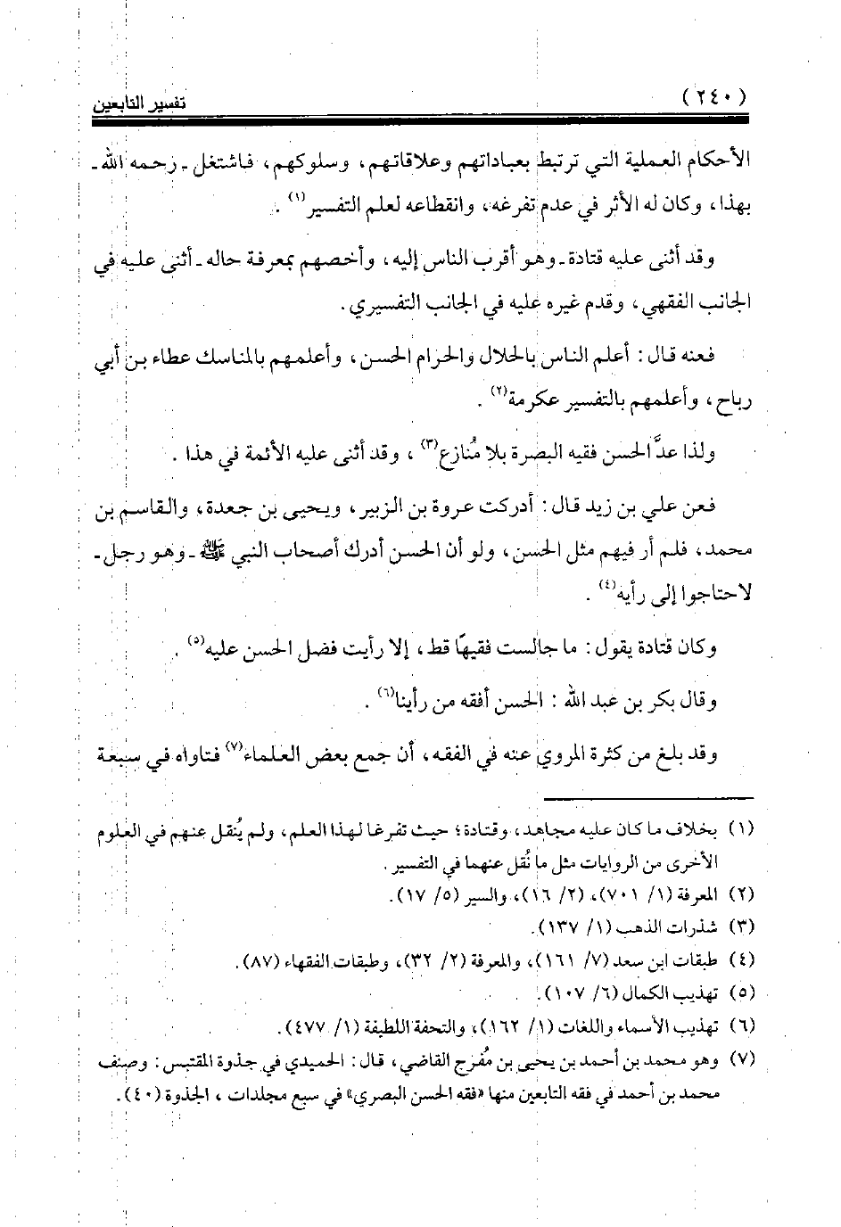 (¬1) بخلاف ما كان عليه مجاهد، وقتادة حيث تفرغا لهذا العلم، ولم ينقل عنهم في العلوم الأخرى من الروايات مثل ما نقل عنهما في التفسير.