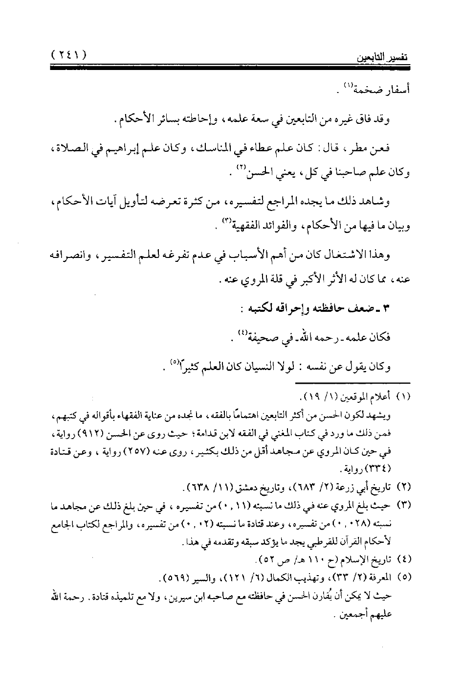حيث لا يمكن أن يقارن الحسن في حافظته مع صاحبه ابن سيرين، ولا مع تلميذه قتادة. رحمة الله عليهم أجمعين.