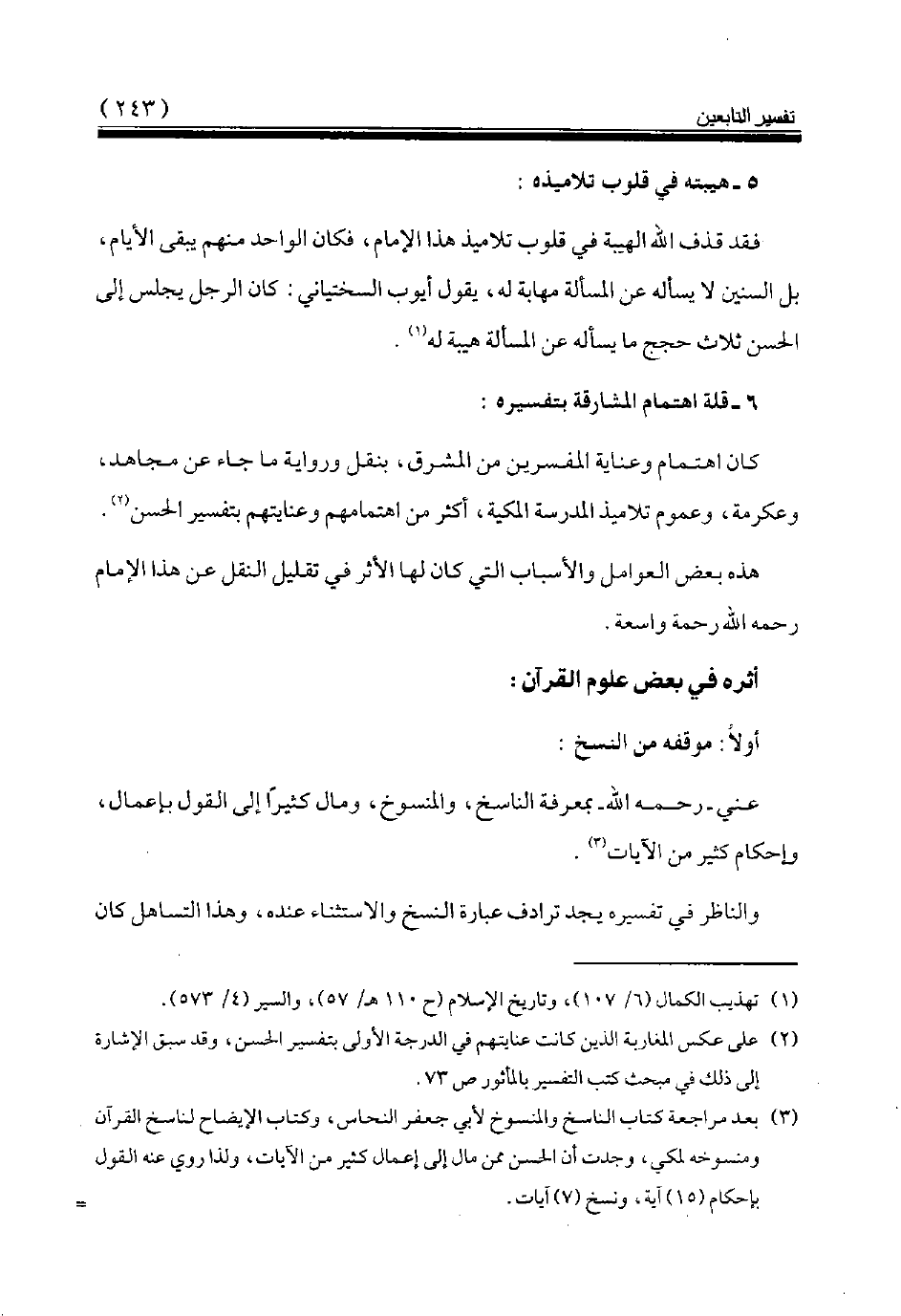 (¬2) على عكس المغاربة الذين كانت عنايتهم في الدرجة الأولى بتفسير الحسن، وقد سبق الإشارة إلى ذلك في مبحث كتب التفسير بالمأثور ص 73.