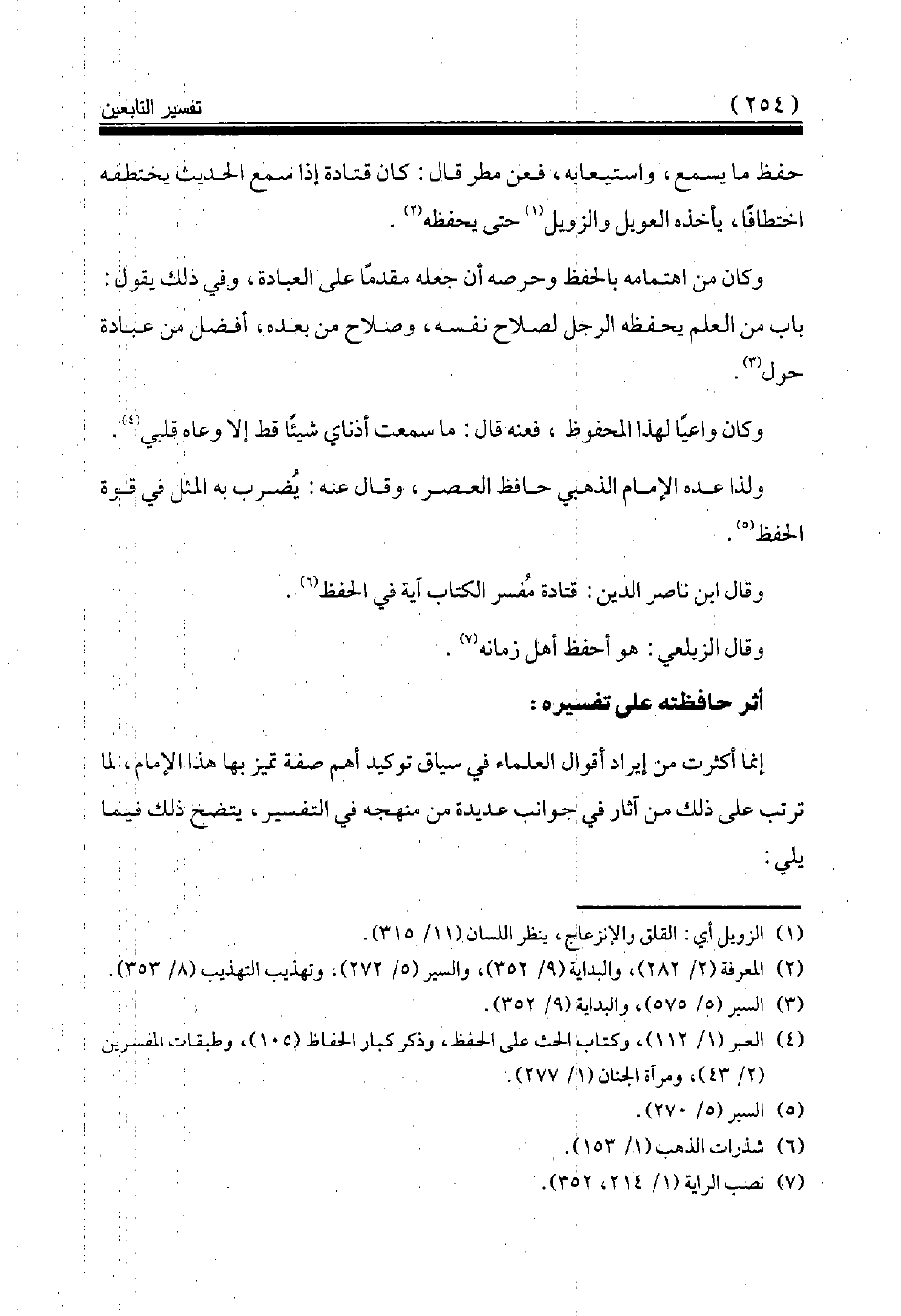 وقال ابن ناصر الدين: قتادة مفسر الكتاب آية في الحفظ (¬6).