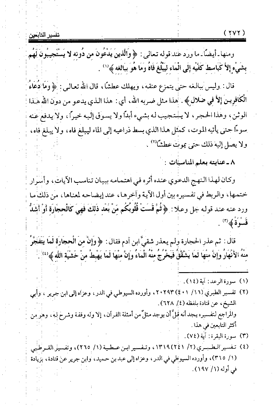 (¬4) تفسير الطبري (2/ 241) 1319، وتفسير ابن عطية (1/ 265)، وتفسير القرطبي (1/ 315)، وأورده السيوطي في الدر، وعزاه إلى عبد بن حميد، وابن جرير عن قتادة، بزيادة في أوله (1/ 197).