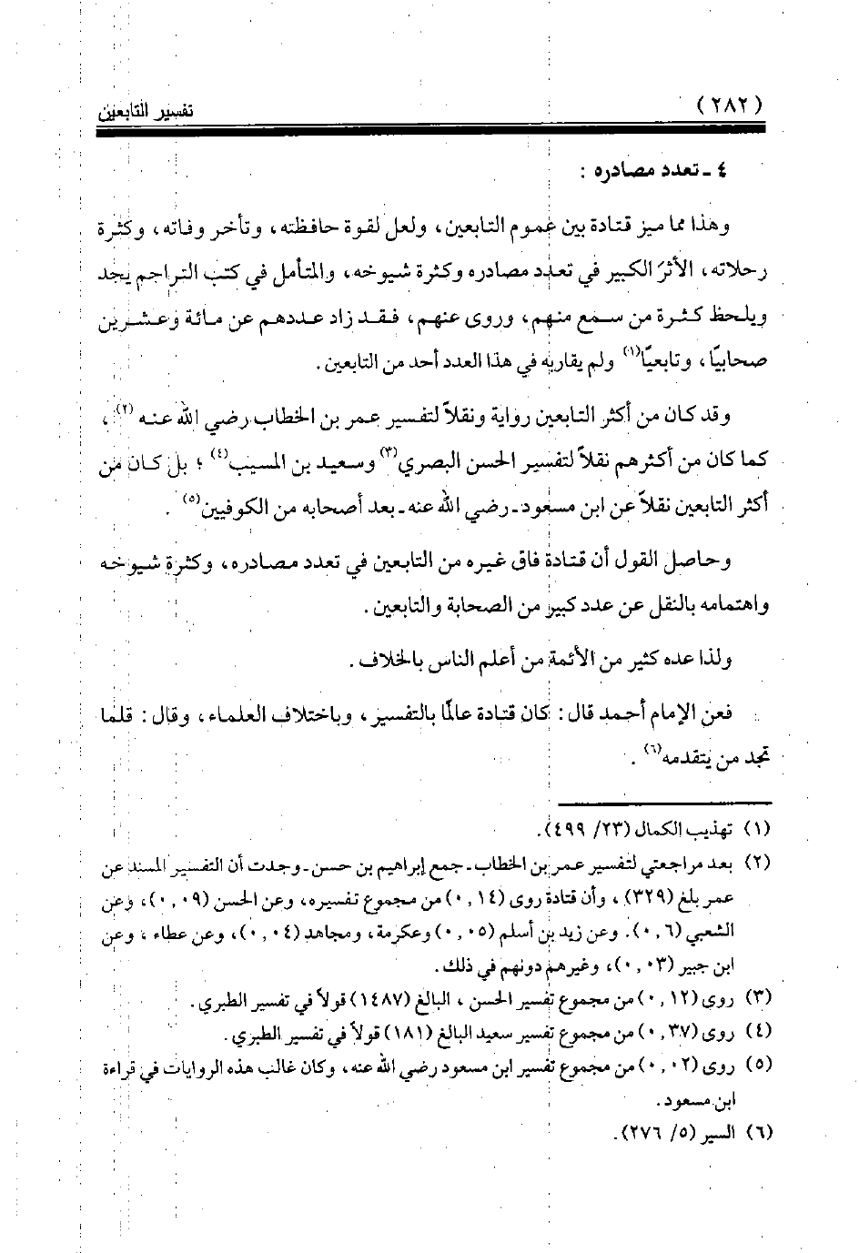 (¬2) بعد مراجعتي لتفسير عمر بن الخطاب جمع إبراهيم بن حسن وجدت أن التفسير المسند عن عمر بلغ (329)، وأن قتادة روى (14، 0) من مجموع تفسيره، وعن الحسن (09، 0)، وعن الشعبي (06، 0). وعن زيد بن أسلم (05، 0) وعكرمة، ومجاهد (04، 0)، وعن عطاء، وعن ابن جبير (03، 0)، وغيرهم دونهم في ذلك.