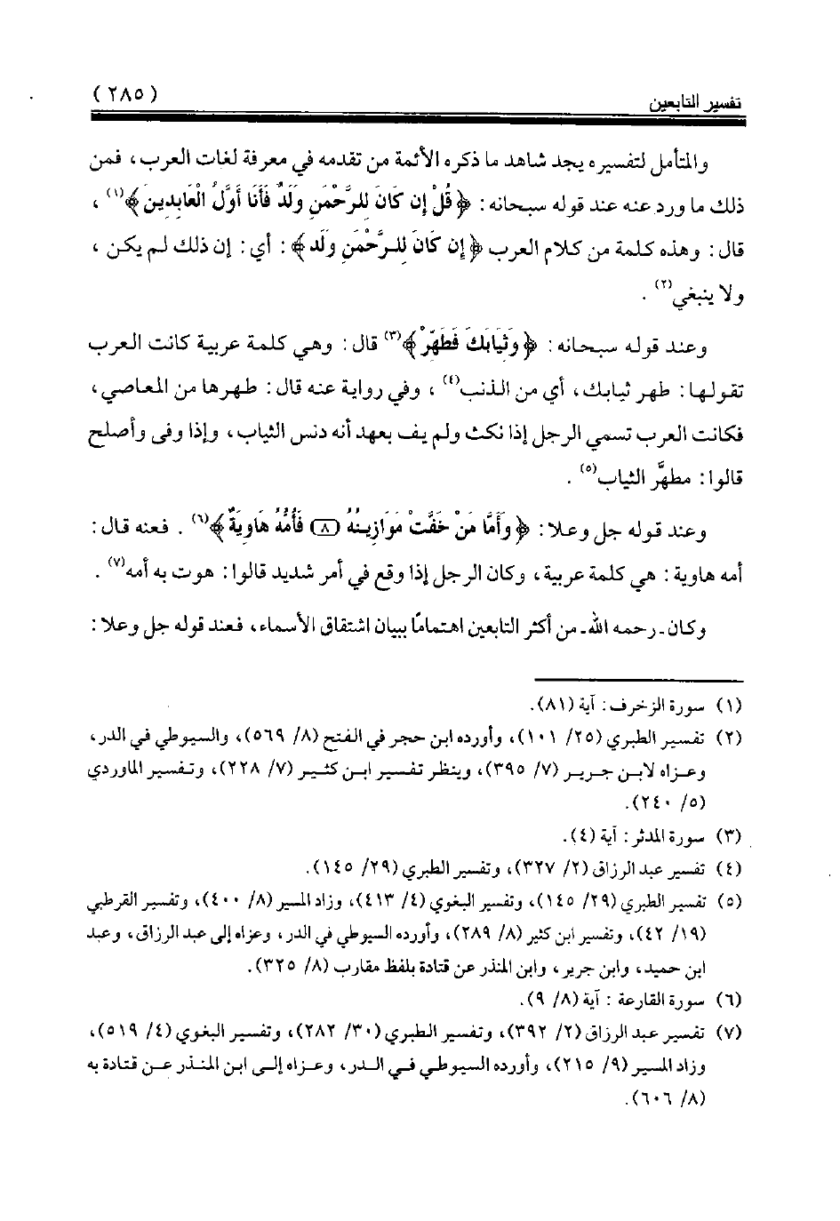 (¬7) تفسير عبد الرزاق (2/ 392)، وتفسير الطبري (30/ 282)، وتفسير البغوي (4/ 519)، وزاد المسير (9/ 215)، وأورده السيوطي في الدر، وعزاه إلى ابن المنذر عن قتادة به (8/ 606).