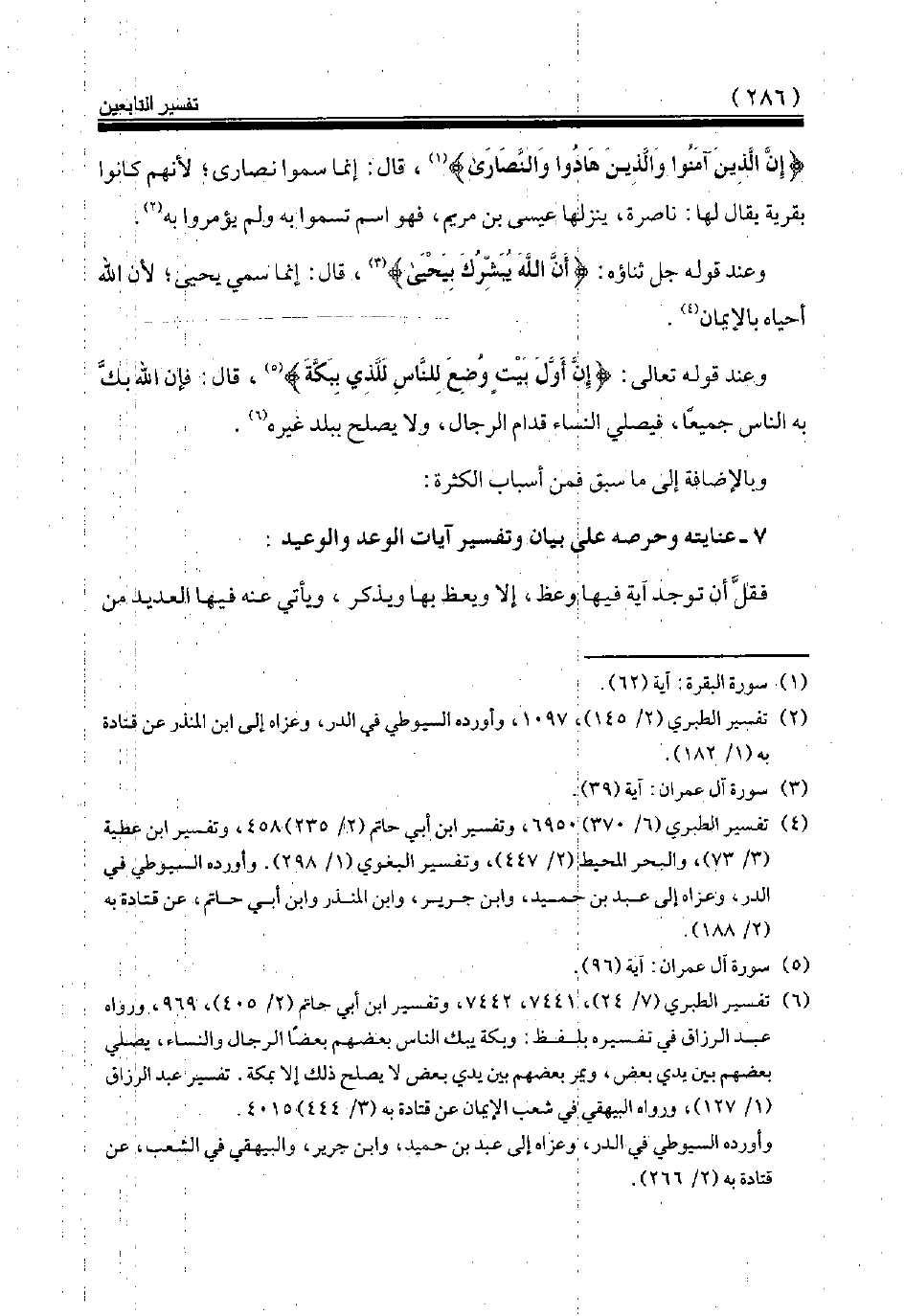 (¬4) تفسير الطبري (6/ 370) 6950، وتفسير ابن أبي حاتم (2/ 235) 458، وتفسير ابن عطية (3/ 73)، والبحر المحيط (2/ 447)، وتفسير البغوي (1/ 298). وأورده السيوطي في الدر، وعزاه إلى عبد بن حميد، وابن جرير، وابن المنذر وابن أبي حاتم، عن قتادة به (2/ 188).
