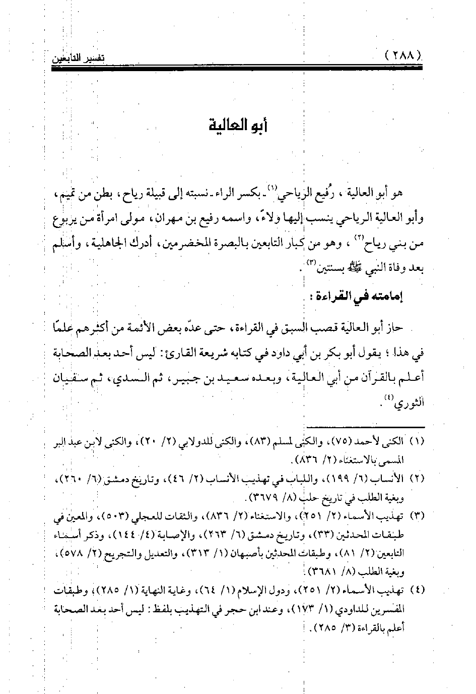 (¬4) تهذيب الأسماء (2/ 251)، ودول الإسلام (1/ 64)، وغاية النهاية (1/ 285)، وطبقات المفسرين للداودي (1/ 173)، وعند ابن حجر في التهذيب بلفظ: ليس أحد بعد الصحابة أعلم بالقراءة (3/ 285).