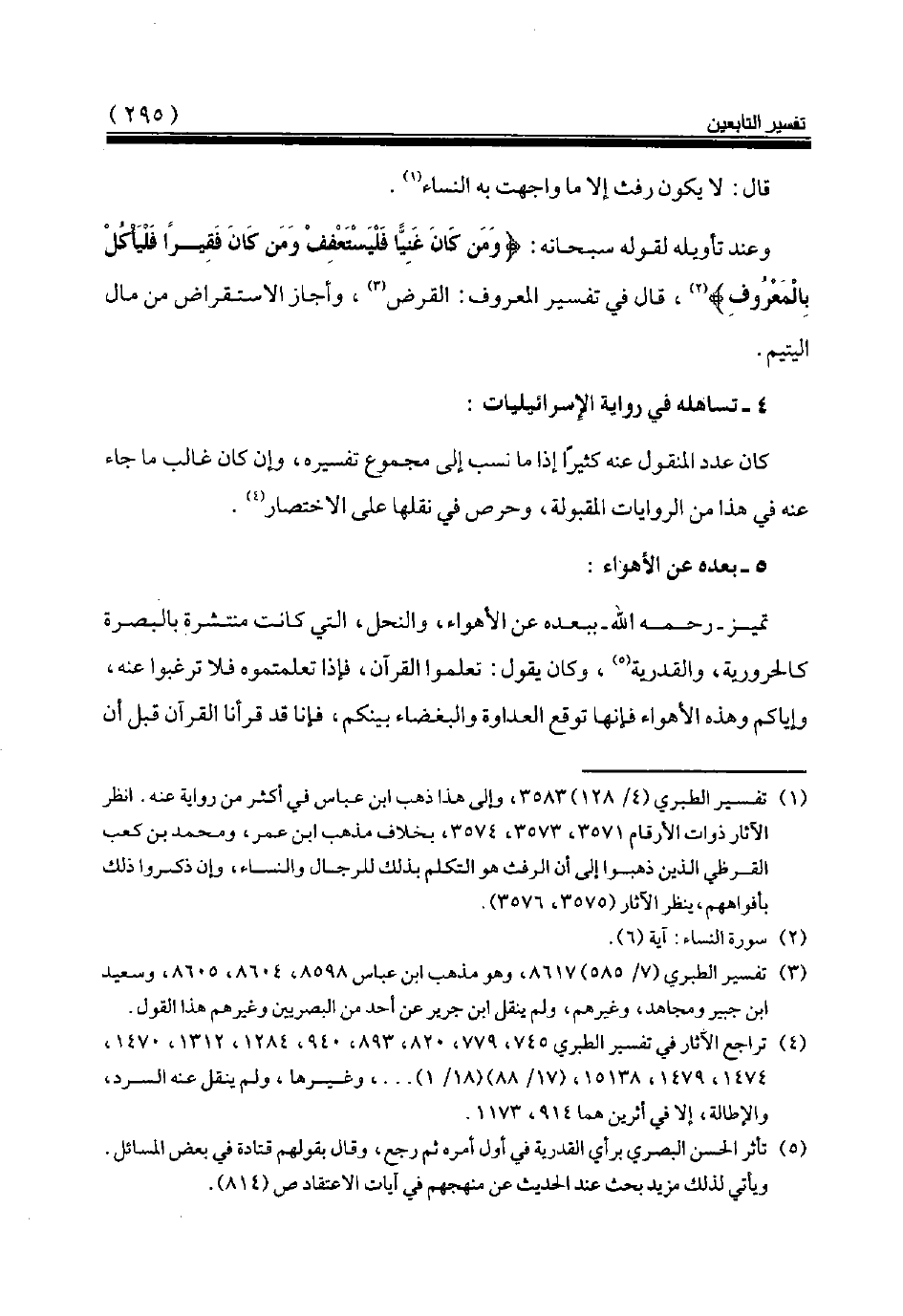 (¬4) تراجع الآثار في تفسير الطبري 745، 779، 820، 893، 940، 1284، 1312، 1470، 1474، 1479، 15138، (17/ 88) (18/ 1)، وغيرها، ولم ينقل عنه السرد، والإطالة، إلا في أثرين هما 914، 1173.
