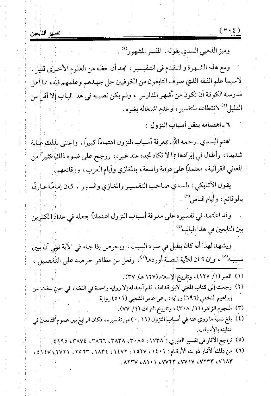 (¬4) بلغ نسبة ما روي عنه في أسباب النزول (11، 0) من تفسيره، فكان الرابع بين عموم التابعين في عنايته بالأسباب.