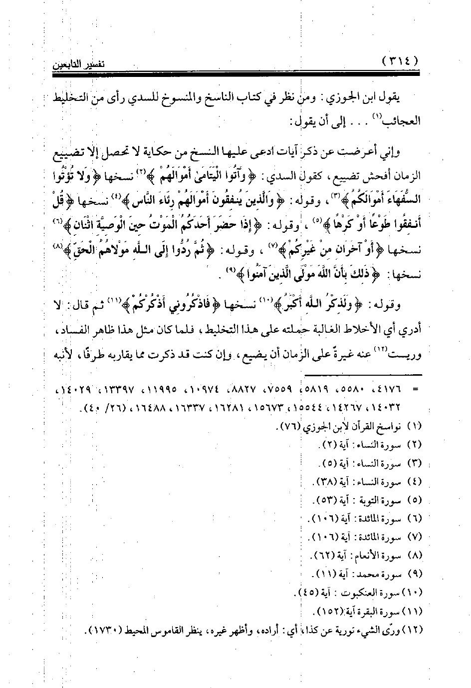 وإني أعرضت عن ذكر آيات ادعى عليها النسخ من حكاية لا تحصل إلا تضييع الزمان أفحش تضييع، كقول السدي: {وَآتُوا الْيَتَامى َ أَمْوَالَهُمْ} (¬2) نسخها {وَلَا تُؤْتُوا السُّفَهَاءَ أَمْوَالَكُمُ} (¬3)، وقوله: {وَالَّذِينَ يُنْفِقُونَ أَمْوَالَهُمْ رِئَاءَ النَّاسِ} (¬4) نسخها {قُلْ أَنْفِقُوا طَوْعاً أَوْ كَرْهاً} (¬5)، وقوله: {إِذَا حَضَرَ أَحَدَكُمُ الْمَوْتُ حِينَ الْوَصِيَّةِ اثْنَانِ} (¬6)