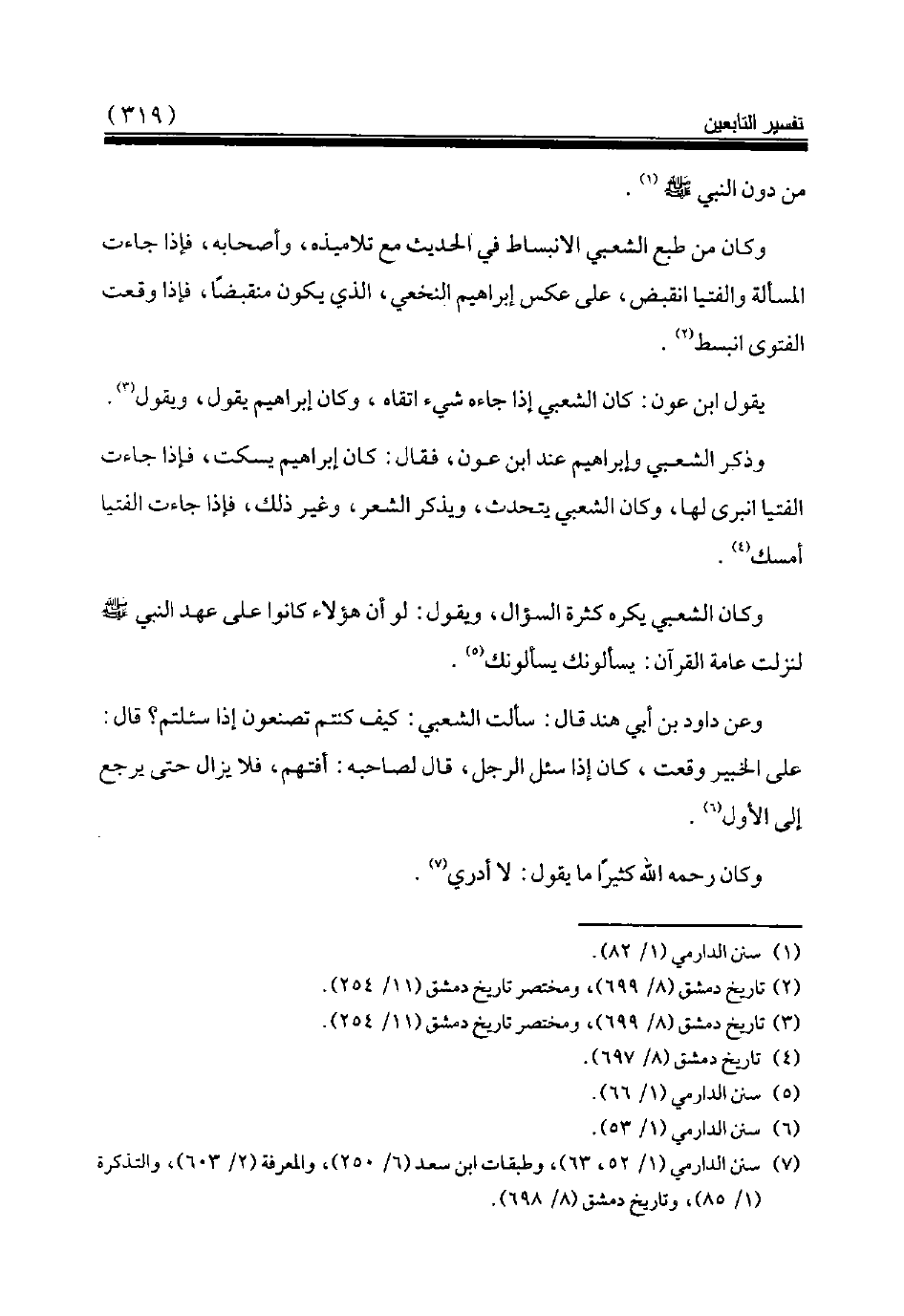 (¬7) سنن الدارمي (1/ 52، 63)، وطبقات ابن سعد (6/ 250)، والمعرفة (2/ 603)، والتذكرة (1/ 85)، وتاريخ دمشق (8/ 698).