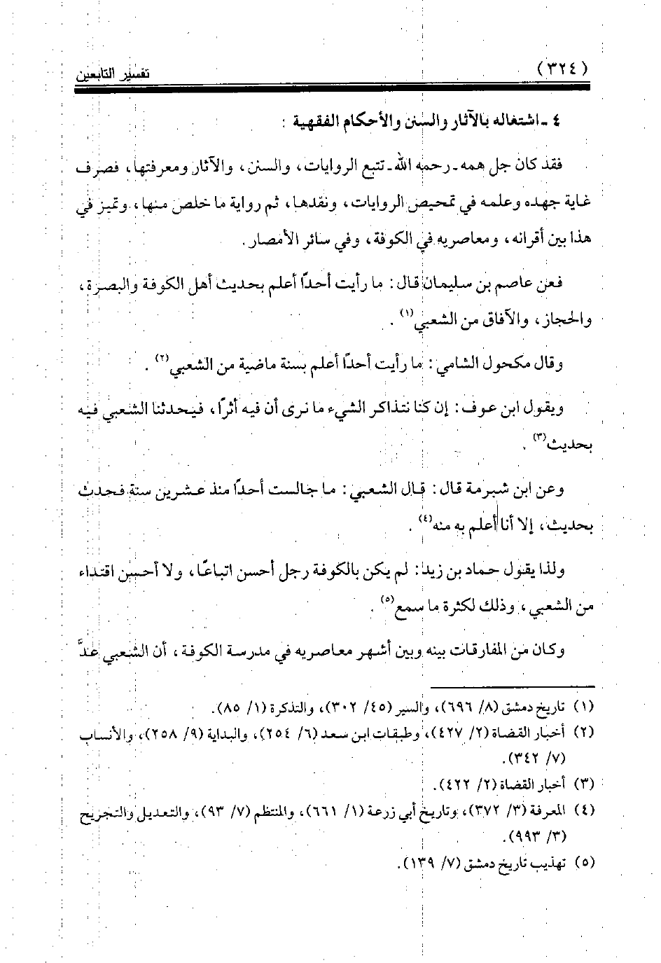 ولذا يقول حماد بن زيد: لم يكن بالكوفة رجل أحسن اتباعا، ولا أحسن اقتداء من الشعبي، وذلك لكثرة ما سمع (¬5).