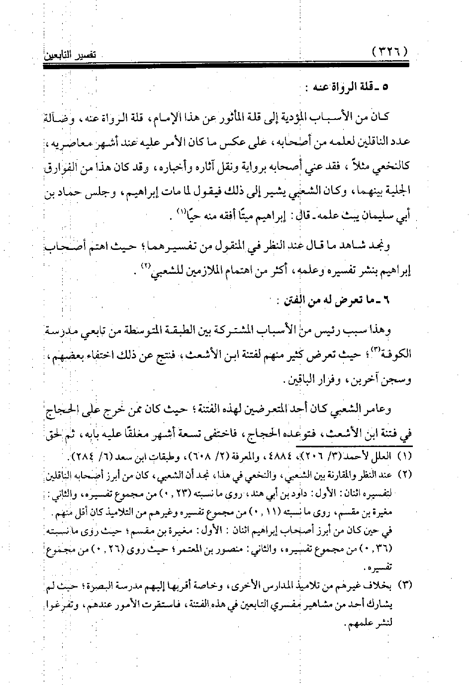 وهذا سبب رئيس من الأسباب المشتركة بين الطبقة المتوسطة من تابعي مدرسة الكوفة (¬3) حيث تعرض كثير منهم لفتنة ابن الأشعث، فنتج عن ذلك اختفاء بعضهم، وسجن آخرين، وفرار الباقين.