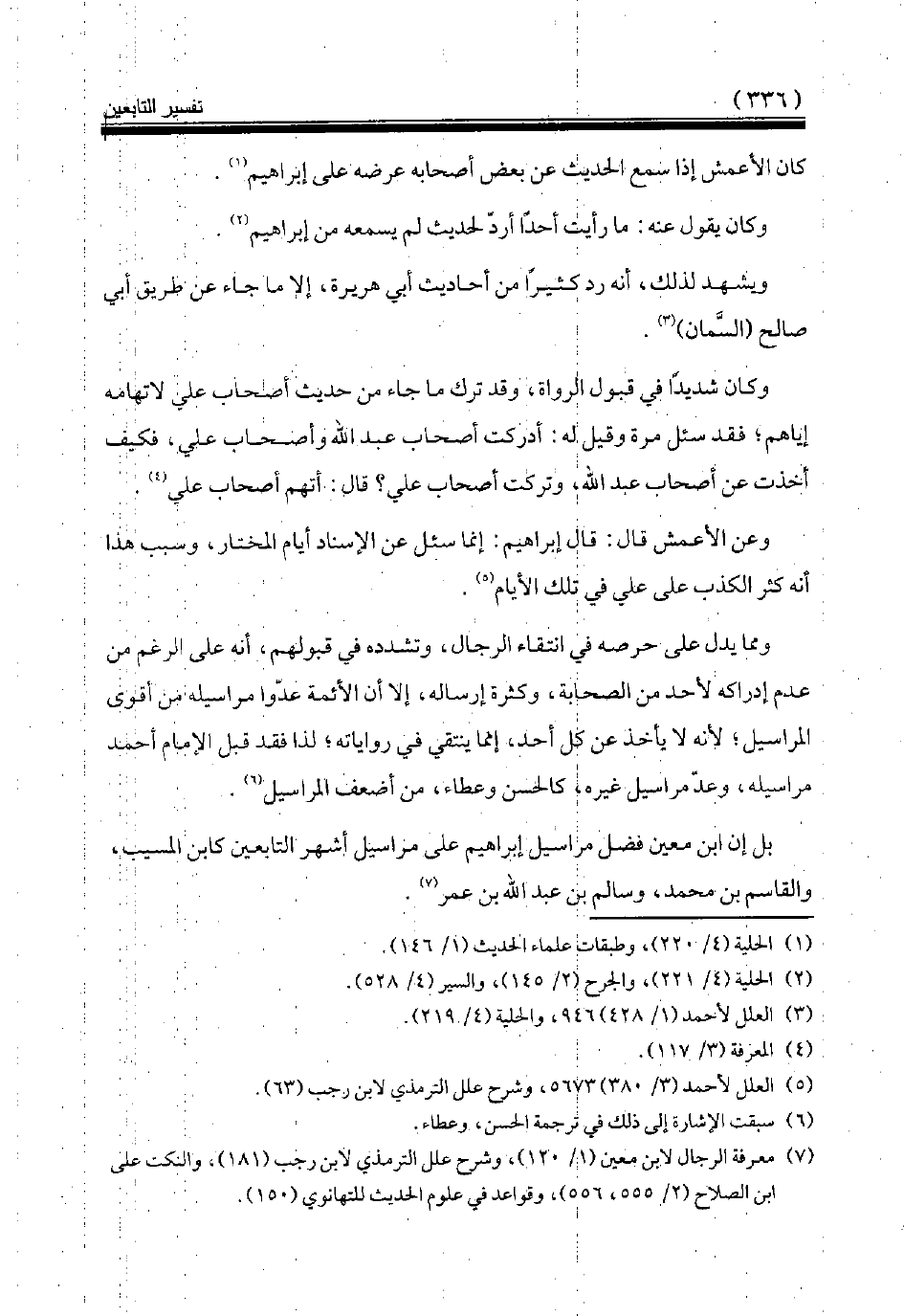 بل إن ابن معين فضل مراسيل إبراهيم على مراسيل أشهر التابعين كابن المسيب، والقاسم بن محمد، وسالم بن عبد الله بن عمر (¬7).