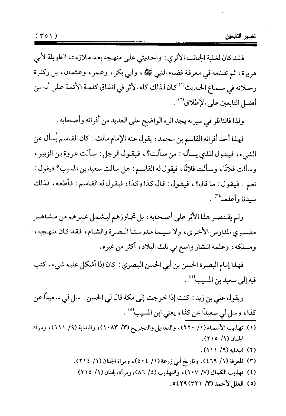 فهذا إمام البصرة الحسن بن أبي الحسن البصري: كان إذا أشكل عليه شيء، كتب فيه إلى سعيد بن المسيب (¬4).