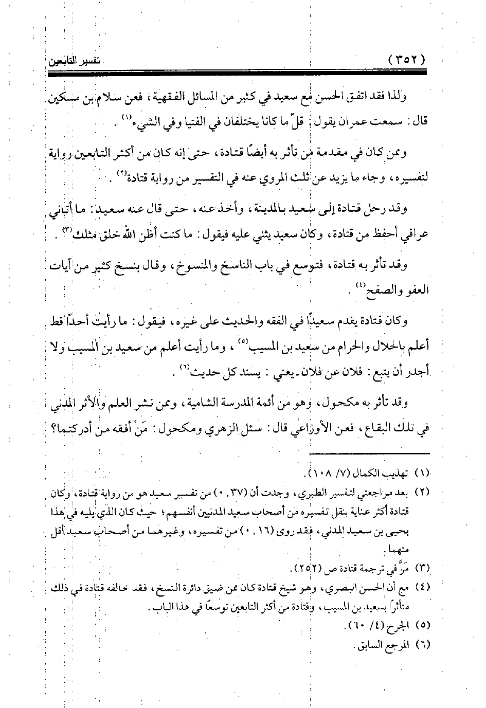 (¬2) بعد مراجعتي لتفسير الطبري، وجدت أن (37، 0) من تفسير سعيد هو من رواية قتادة، وكان قتادة أكثر عناية بنقل تفسيره من أصحاب سعيد المدنيين أنفسهم حيث كان الذي يليه في هذا يحيى بن سعيد المدني، فقد روى (16، 0) من تفسيره، وغيرهما من أصحاب سعيد أقل منهما.