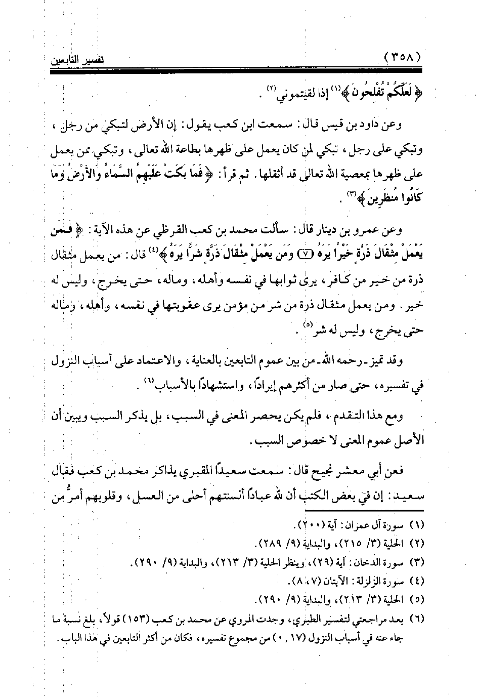(¬6) بعد مراجعتي لتفسير الطبري، وجدت المروي عن محمد بن كعب (153) قولا، بلغ نسبة ما جاء عنه في أسباب النزول (17، 0) من مجموع تفسيره، فكان من أكثر التابعين في هذا الباب.