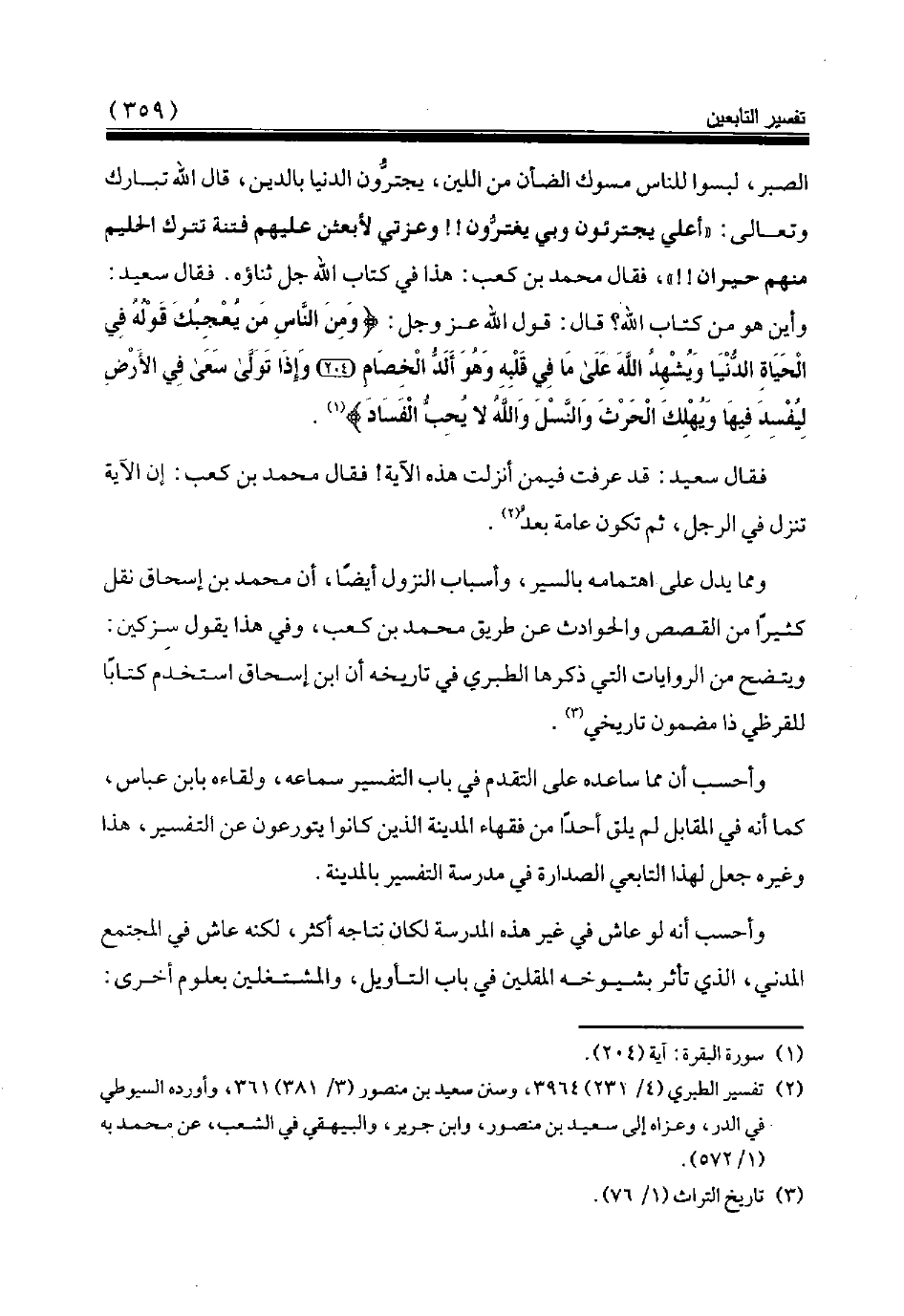 فقال سعيد: قد عرفت فيمن أنزلت هذه الآية! فقال محمد بن كعب: إن الآية تنزل في الرجل، ثم تكون عامة بعد (¬2).